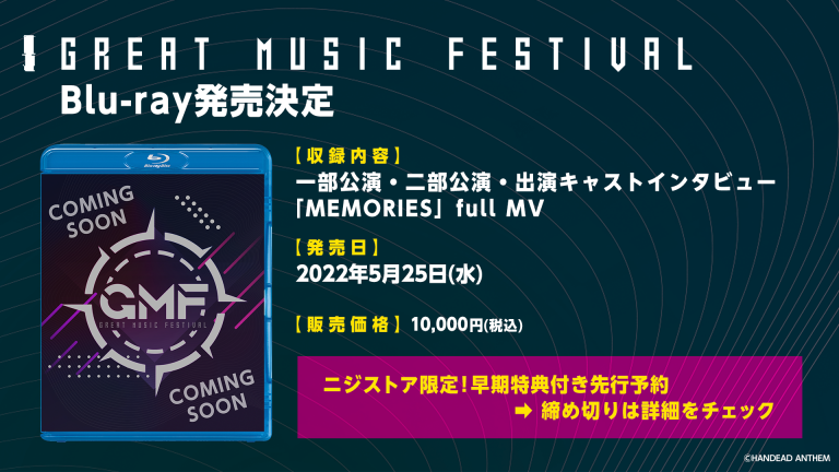 2022年1月30日(日)開催「GREAT MUSIC FESTIVAL」Blu-rayの詳細を公開いたしまし … 続きを読む 【News】「GREAT MUSIC FESTIVAL」Blu-ray発売決定!
